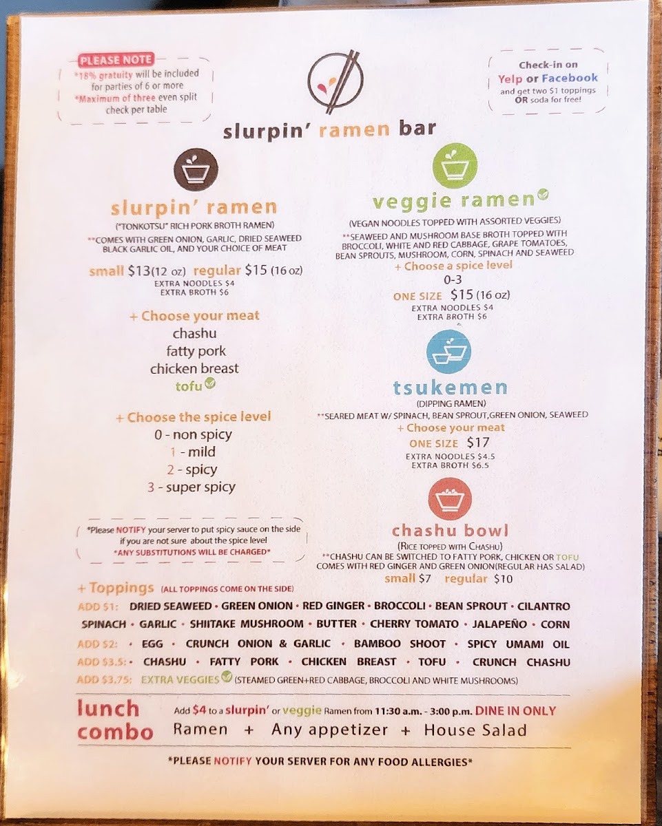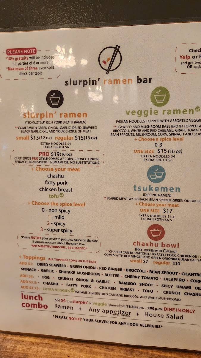 With efficient service and a welcoming atmosphere, Slurpin Ramen Bar is your destination for a delicious escape from the ordinary!